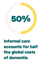 虽然全球行动组织四分之三的国家为认知症患者的照护者提供服务、支持或规划,但其中大多数是在高收入国家中提供的。然而,大部分非正规护理是在低收入和中等收入国家提供的。最常见的护理服务类型包括在整个疾病过程中对认知症的管理培训和教育、护理人员的心理和社会支持、临时服务以及关于法律权利的信息或咨询。提供全面财政和社会保障福利以保护照顾者免受财政风险的国家较少。此外,照料对妇女的影响格外大,她们约占全球非正规照料时间的70%,在低收入和中等收入国家中所占比例最高。