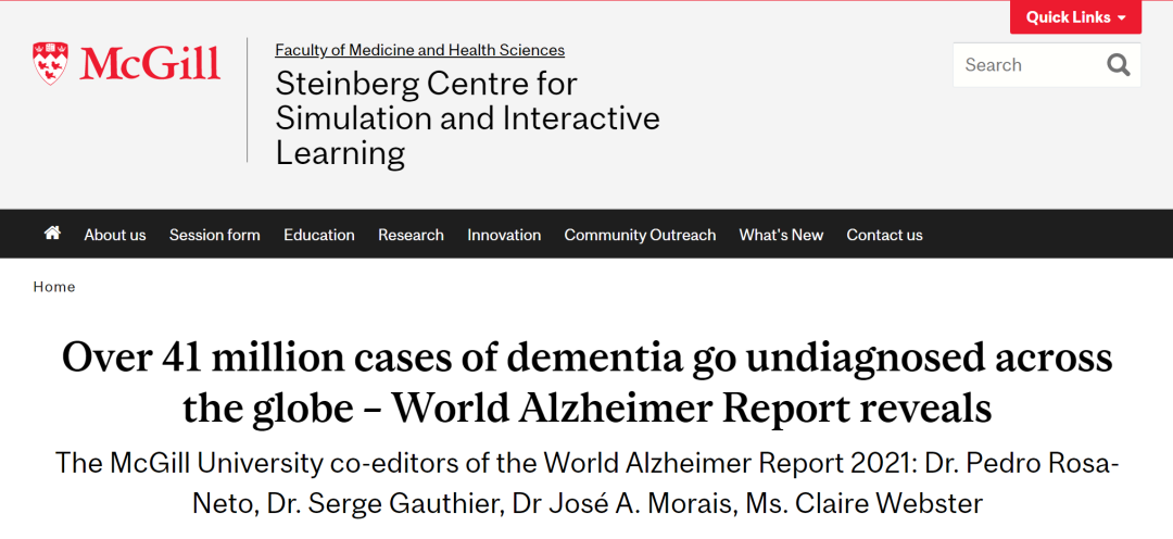 2021年9月21日(世界阿尔茨海默病日)当天,国际阿尔茨海默病协会(ADI)官网发布了《2021年世界阿尔茨海默病报告》。这份报告由 ADI 委托加拿大麦吉尔大学的研究团队完成。